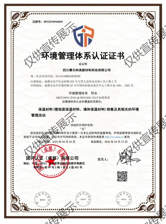 四川賽爾科美新材料科技有限公司是專注于綠色建材和生態環境材料研發、生產的新型高新技術企業。公司聯合國內外一流的科研院校,組建綠色建材及生態環境材料的博士研發團隊,依托在建筑行業二十多年的探索及實踐經驗,致力于研發納米技術在建材行業中的應用。公司設有高端納米材料實驗室,并建立了綠色建材及生態環境材料研發中心與生產試驗基地,以強烈的社會責任感和超前的行業發展意識,立足“綠水青山就是金山銀山”的中國夢,圍繞高性能、低碳、環保、安全的材料科技產品開發、生產與服務,致力于打造綠色建材及生態環境材料行業專業化知名品牌。