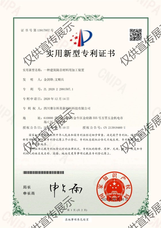 賽爾科美經過多年科研發展,已獲得數十項國家專利